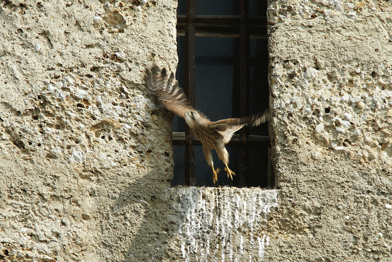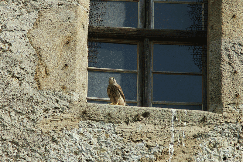 Nun sind sie endlich abgeflogen - die Turmfalken, die in einer Fensternische des Kirchturms aufgezogen wurden.
